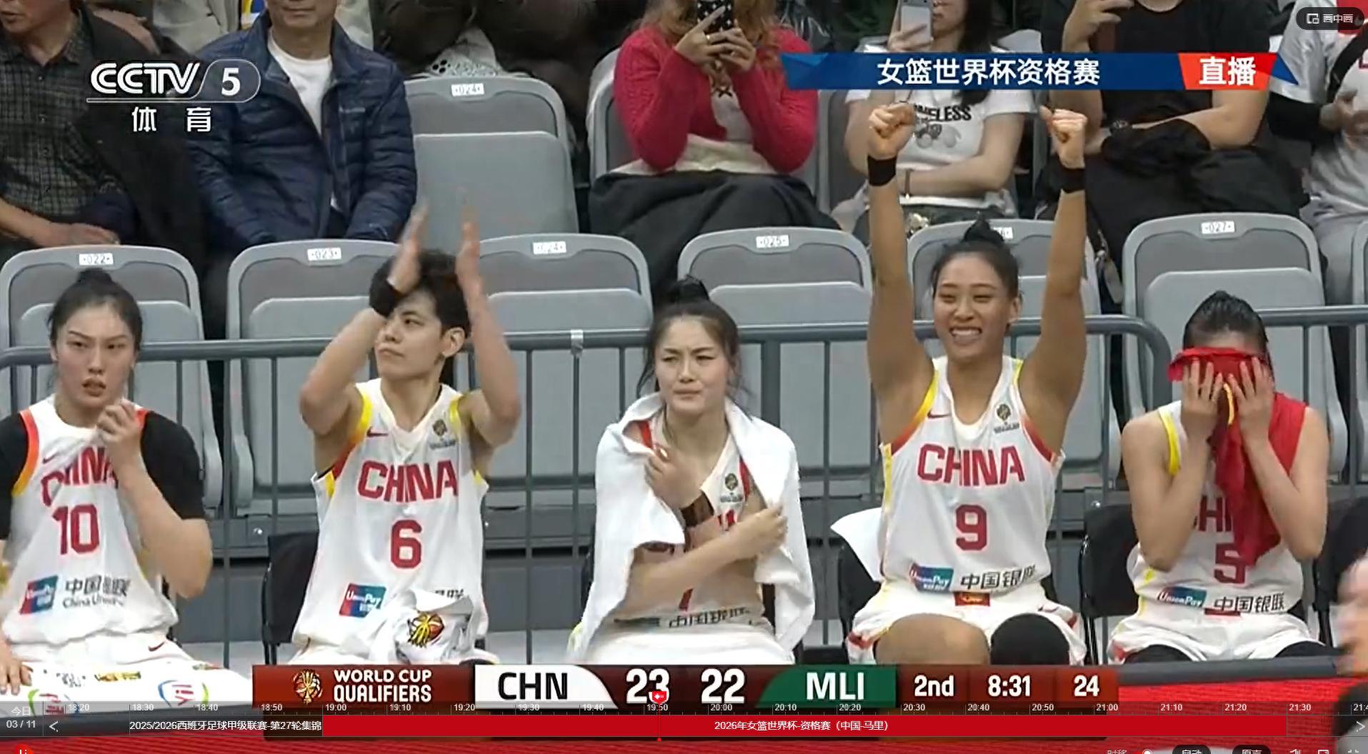 今天中国队上半场打得并不好,差在首发控卫,未能组织起有效进攻,第一节马里队频频冲击中国队,大部分时间处于领先,之后中国队渐渐找到状态,把比分追成20平,第二节上双塔的李月汝和韩旭,终于拉开比分,郑微赞扬说中国队上半场打得最好的一段时间就是上双塔的这段时间,半场结束反超马里队6分。下半场中国队表现比上半场更好,一度领先15分,最终以13分的优势击败对手。
