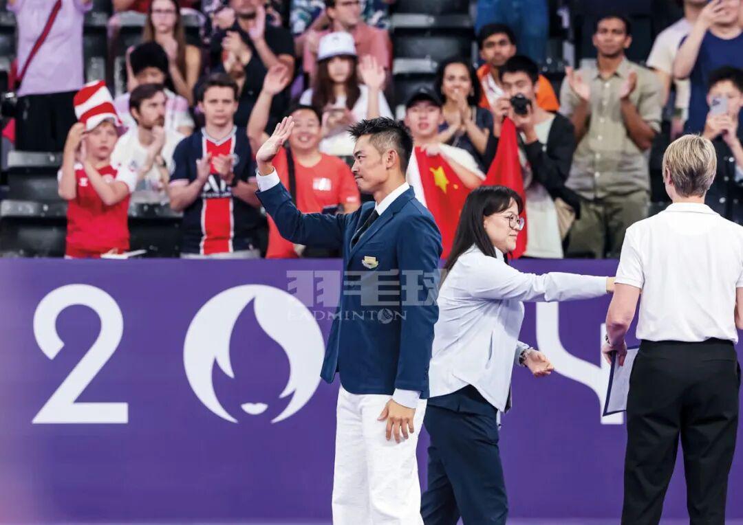 当巴黎奥运会倒计时 100 天,林丹来到埃菲尔铁塔,与陶菲克、李宗伟、盖德等老对手并肩而立。那一刻,他不再只是中国羽毛球的代表,而是让这项运动在世界舞台上亮相的一束光。随后,巴黎奥运期间,他亮相拉夏贝尔门体育馆。在每日开球环节中,林丹一袭蓝色西装站上熟悉的羽毛球赛场,完成开球仪式。看台上的球迷们见到林丹的到来,欣喜若狂的呼喊着他的名字。